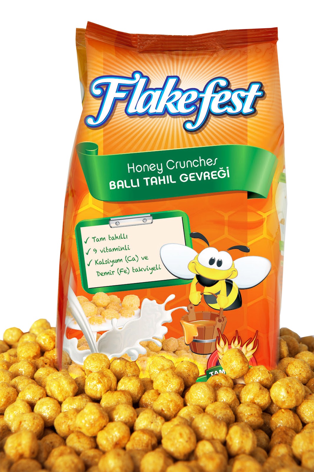 Flakefest; 9 vitaminli, kalsiyum ve demir takviyeli, bol lifli, tam tahıllı, taş değirmen unundan üretilen ve hiçbir koruyucu madde içermeyen, hem nefis hem de sağlıklı yepyeni bir lezzet.